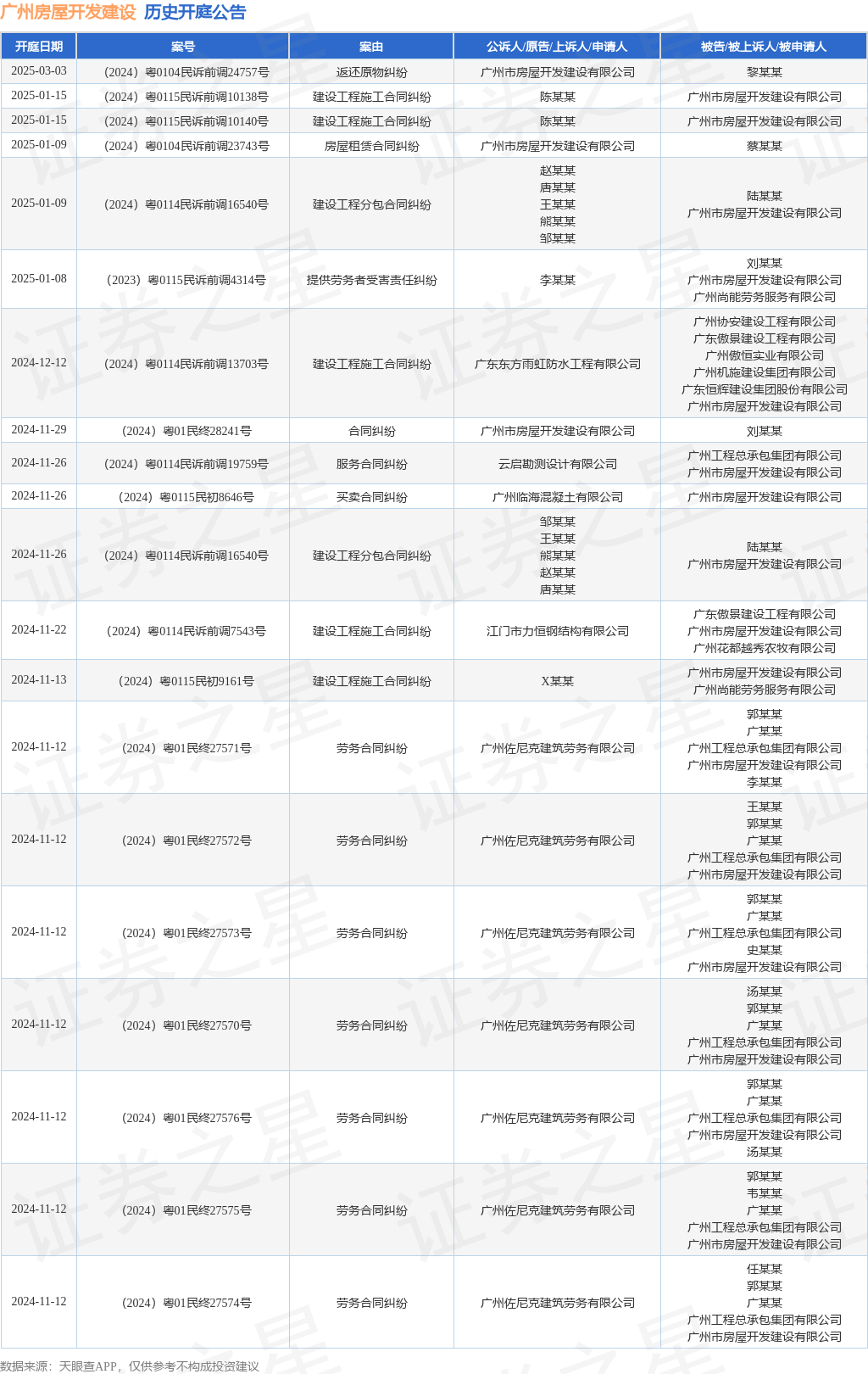 本站消息,根据天眼查APP显示,近日公布了一则广州市房屋开发建设有限公司作为被告/被上诉人的开庭公告,详细内容如下: